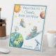 This adorable acrylic sign will greet your guests and start the excitement of your baby shower. It features teddy bear astronauts, planets, space ships, the sun, stars, a telescope and a satellite dish. There's an easy to use template for you to put the Mom to Be's name in place of the example shown and the date at the bottom.