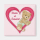 Teddybär, der auf einem tiefen rosa Herz sitzt. Dieser kleine Bär bringt eine Nachricht für den Valentinstag oder das ganze Jahr über. Der Text sagt Niedlich und intelligent.