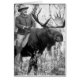 Teddy Roosevelt, der eine Stierelchkarte reitet.