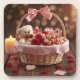 Teddy Rose Basket Romantic Valentine Heart Drink Getränkeuntersetzer