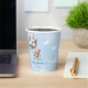 Teddybär, der von den blauen Himmelsballons abstei Pappbecher