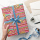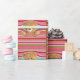 Niedlicher, brauner Teddybär in gezogenem Rosa und grünen horizontalen Streifen. Kann für Babygeschenk oder Geburtstag verwendet werden.