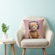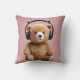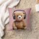 Niedlicher, brauner Teddybär mit Kopfhörern, abgeschieden auf rosa Untergrund.