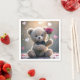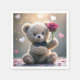 Ein flauschiger Teddybär mit einer formalen Krawatte aus schwarzem Bug hält eine Single-rote Rose mit langstammendem Stamm, umgeben von sanft leuchtenden Herzformen.