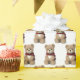 Ein niedlicher brauner Teddybär mit dunkelrotem Schal auf weißem Hintergrund