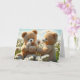 Zwei bezaubernde braune Teddybären sitzen inmitten eines Gänsefeldes und halten jeweils einen flauschigen Kronleuchter. Der Insider-Text kann geändert werden.