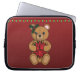 Dieser süße, braune Teddybär hat die Hallen mit Lichtern geschmückt und sich selbst ein wenig heilig gemacht, um eine tolle Weihnachtsstimmung zu schaffen, um jemandem eine hübsche rote Poinsettie zu schenken.