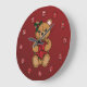 Dieser süße, braune Teddybär hat sich mit ein bisschen Heiligenschein geschmückt, um eine tolle Weihnachtsstimmung zu schaffen, um jemandem eine hübsche rote Poinsettie zu schenken.