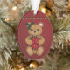 Dieser süße, braune Teddybär hat die Hallen mit Lichtern geschmückt und sich selbst ein wenig heilig gemacht, um eine tolle Weihnachtsstimmung zu schaffen, um jemandem ein besonderes Geschenk einer hübschen roten Poinsettie zu geben.
