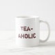 Tasse mit Schreiben des dunklen Brauns, dass gelassenes ` s jeder Sie ` bezüglich eines eifrigen Teetrinkers kennen. Solch eine große Geschenkidee!