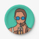 Funky farbenfrohe Grafik eines Mädchens, das Blasen-Tee trinkt. Helles, modernes Farbdesign cool und trendig.