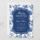 Tee Party Baby Dusche blauen Chinoiserie Einladung. Schönes elegantes Design in marineblau-weiß mit handgemalten botanischen Akzenten und Teekannen. Sie können gedruckte Einladungen auswählen und/oder eine digitale Vorlage zum sofortigen Download auswählen. Ideal für eine stilvolle High Tee Babydusche.