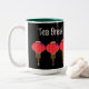 Tea Break Kaffee Textname mit White Text Farbe Stil Zwei Tone Tasse mit Hunter Green Color Penicillin Schriftart Name mit Größe ist 15 oz Zwei Bilder von Celebration Light mit Text Cups oder Tasse