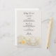 Das elegante Tee-Cup und das White Rose Wedding Menü mit den Details des Essens, das Sie in Ihrem Tee-Party Brautparty Mittagessen, Post Hochzeitsbrunch oder Ehe-Empfang-Dinner, indem Sie den Salat oder ersten Gang, Vorspeise oder zweiten Gang und Dessert oder dritten Gang. Personalisieren Sie es mit den Namen der Braut und Bräutigam, Veranstaltungsort und Datum. Dieses elegante Hochzeitsmenü bietet ein Blumenfoto mit einer Teetasse und Untertasse mit goldenen Kanten und einer weißen Rosenblüte mit weißem Satin.