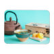 Tee-Set für eine Person mit gusseiserner Teekanne, handgefertigtem Tonteacup, Teekiste und zwei Käseplatten.