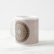 Schöner, runder Mandalaentwurf. Innerhalb er enthält einen verwickelten kaleidoskopischen Entwurf in den natürlichen braunen Schatten der Farbe für eine Antike, Vintag, Tee gefärbtes Gefühl, das die Fantasie gefangennimmt. Dieses Element ist gegen einen strukturierten Hintergrund, wenn der helle Tropfenschatten einen Auftritt des festen Bereichs gibt. Macht ein wunderbares Geschenk für die, die die Liebe, die mit Mandalas arbeitet, und auch die die die Liebe bunt, einzigartige, abstrakte Grafik.