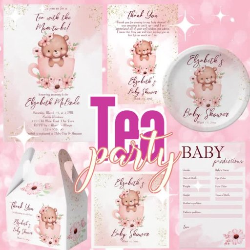 Tee-Party Babydusche Teetasse mit Blume rosa Einladung