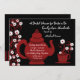 Schwarz und Rot Teekanne Einladung für Brautpartys, Babyduschen, Geburtstage, Hauswärmung und mehr. Passen Sie mit Ihrem eigenen Text an, indem Sie extra Platz auf der Rückseite für mehr Text haben.