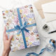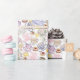 Tasse Tee und Kekse, die aus Packpapier hergestellt sind. Handgemalte Aquarellelemente wie Teekekekse, Teebeutel, Zitronenscheiben und Teelöffel sowie eine Vielzahl von Teebechern machen das Teepapier zum idealen Party.