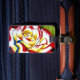 mit originellem Kunstdesign aus Aquarellmalerei von Sacha Grossel aus der Blume von rotem und gelbem Hybrid-Tee vor grünem Hintergrund. Dieses helle und zeitgenössische Kunstdesign ist von einem großen, nah fokussierten Makro-Blumendesign eines botanischen Motivs in leuchtendem, lebendigem, bunten Stil für Floristen und Rose überall.