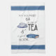 "Alles, was Sie brauchen, ist eine Tasse TEA und ein gutes BUCH" Wörter erscheinen mit einem Aquarellmalerei einer Teetasse und einem Buch in blau-weiß und blau Streifen, um dieses gemütliche Lesen themed Küchentuch zu machen.