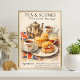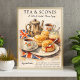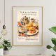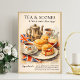 Feiern Sie den Charme des traditionellen britischen Nachmittagstees mit diesem entzückenden Tee-und-Scones-Plakat, das ein wunderschön illustriertes Teeservice, warme Scones, Erdbeermarmelade und eine klassische Teekanne zeigt. Inspiriert von Vintage-Kochbuch- und Café-Plakat-Designs, fängt dieses Kunstwerk die gemütliche Atmosphäre der Londoner Teekultur mit eleganten Wasserfarben-Details und warmen Farben ein.