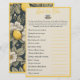 Das ist ein Bridal-Tee-Spiel, das Spaß macht, zu treffen und zu grüßen; es ist eine ausgezeichnete Möglichkeit, ein Brautparty zu starten. Diese Vorlage enthält anpassbaren Text. Das Design in den zarten Pinselstrichen versetzt Sie in die Romantik eines Vintagen Party im Garten. Die Gegenstände sind mit üppigen Zitronenästen und exquisiten Blüten geschmückt. Das Grau der Holzkohle, das an die Raffinesse des Regals erinnert, verbindet sich harmonisch mit dem sanften Reiz des Zitronengelbes und der schlichten Schönheit der Creme. Diese Farben schaffen eine raffinierte und einladende Palette. Das Design strahlt eine fesselnde Atmosphäre von Weiblichkeit und Schönheit aus. Das Zitronenmotiv und das Blumenmotiv erinnern an die Essenz des Frühlings und tragen zu einer Touch natürlichen Charmes bei.