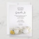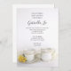 Lade die Gäste zu einem Party ein, in dem die Mutter mit dem eleganten Tea Cup mit der Yellow Daisies Baby Shower Invitation geehrt wird. Diese elegante Dusche mit Blumen lädt mit einem Blumenfoto von einer Teetasse, einer Untertasse und einer Creme mit kleinen gelben Portionen und weißem Satin ein. Perfekte Inspiration oder Idee für ein Tee-Party oder ein High Tee-Event-Thema. Erhältlich als gedruckte Einladung zum Verschicken oder als digitaler Download für den einfachen digitalen Austausch online.