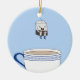 Niedlicher und lustiger Teebeutel, der in eine Teetasse springt. Die perfekte Mischung für jeden Teeliebhaber.