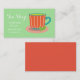 Eine niedliche Vintage Retro-Visitenkarte, die sich für ein Café eignet - sei es für ein mobiles Café oder einen Kaffee oder ein Teeservice. Dieses skurrile Design zeigt eine Abbildung eines niedlichen Retro-Teetassen vor grünem Minzhintergrund. Die Hintergrundfarbe kann geändert werden, um Ihren Geschmack Anzug. Diese Visitenkarte ist vollständig anpassbar, um Ihre persönlichen Daten einzuschließen.