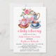 Teekanne Rosa Blume Tee Party Kinderdusche Einladung