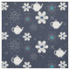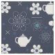 Blau-weiße Muster mit Blume und Teekannen.