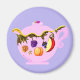 Teekessel mit Früchten und Blätter von Kristie Hubler mit kuschelenden Blätter, Beeren wie Goldbeere oder Fallbeere, BlackBerry (oder lila), Magenta-Himbeere, Blaubeeren, Stachelbeeren, Heidelbeeren, Pfirsich und rote Apfelscheibe auf einem runden Magneten