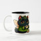 Eine niedliche kleine Feenkatze im gemütlichen Pullover trinkt seine Lieblings-Tasse Tee.