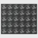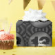 Schwarzes, bedrücktes Design, Packpapier auf einer Rolle mit Altersvorlage. Ideal für ein Party eines Teenagers, dessen Alter in einem runden silbergrauen Bild in schwarzem Grunge-Schriftart gepatcht ist. Verwenden Sie die Vorlage, um das Alter des Geburtstagsjungen einzufügen.