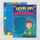 Space is provided to add birthday details: Name, Age, Date, Time, and Place. Bold, cheerful text reads: "Level Up! It's [Name]'s Birthday!"