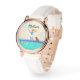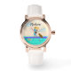 Personalisieren Sie diese niedliche Uhr für junge Mädchen, oder Teenager Mädchen, die Liebe, Paddel-Boarding zu gehen. Meine eigene Illustration enthält tropische Farben und SUP Spaß als blondes Mädchen paddelt ihren Hund in tropisch blauem Wasser. Eine Meeresschildkröte schwimmt nebenan. Ihr Name kann oben auf dem Bild hinzugefügt werden. Die lila Band ist nur eine von vielen Farben verfügbar. Das ist ein einzigartiges und lustiges Geschenk an jede junge Outdoorerin.