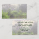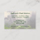 Diese Visitenkarte annonciert ein Teich-Dienstleistungsunternehmen, das Planung, Entwurf, Bau, Wartung, Reinigung und Management staut. Sie kennzeichnet eine Szene des Friedens und der Ruhe… ein Frühsommermorgen mit dem Nebel und Nebel, die über den Teich steigen. Entfernter Himmel, blasse Bäume und grünes Laub werden im Wasser reflektiert. Das Bild wird auf der Rückseite wiederholt. Aller Text kann zum Anzug besonders angefertigt werden Ihre einzelne Situation.