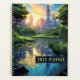Dieser Planer zeigt eine lebendige Abbildung eines Teiches in einem Stadtpark. Lilienpads schweben auf dem blauen Wasser und rosa Blume blühen am Ufer. Große grüne Bäume und Gräser ergänzen das Parkgelände. In der Ferne reichen große Gebäude in Richtung Himmel, der mit Sonnenlicht erleuchtet ist. Das Design ist auf der Vorder- und Rückseite gleich. Personalisieren Sie die Front mit dem laufenden Jahr.