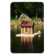 Teich mit Vogelhaus vor der Kulisse einer Bergrutschbahn im Melitopol Gorky Park