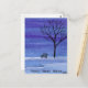 Eine Aquarelllandschaft einer gemütlichen Sitzbank am Rande eines Teiches im Abend schmückt diese individuell gestaltbare Postkarte!