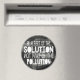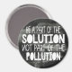 Mit seiner weißen Beschriftung auf schwarzem, glattem Hintergrund hebt dieser Magnet das Bewusstsein für Verschmutzung hervor: Seien Sie Teil der Lösung, nicht Teil der Verschmutzung!
