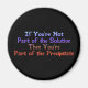 Wenn Sie nicht Teil der Lösung sind, dann sind Sie Teil des Rezeptes - blaue und rote Schrift auf einem schwarzen Magneten.