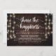 Teilen Sie das Glück, Hochzeitsfeier Ankündigung / Einladungskarte, in Rustikalem Bauernhof Holz, String Lights Design. Dies ist ideal für Ihren Hochzeitsempfang und Ihr Party nach der Hochzeit. Fügen Sie Ihre Daten in passender Schriftart / Schrift hinzu. #TeeshaDerrick