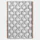 Diese Wurfdecke hat ein modernes Design von Kreisen in schwarz gespalten in der Hälfte und auf Linien auf einem Feld von weiß.