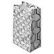 Diese Geschenktasche hat ein modernes Design von Kreisen in schwarz gespalten in der Hälfte und auf Linien auf einem Feld von weiß.