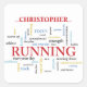 Das Wort Running steht im Mittelpunkt vieler Worte, die die Freude, das Engagement und den Sport des Laufens widerspiegeln. Farben und verschiedene Schriftart Set der verschiedenen Wörter. Der Läufer wird sich freuen, die vielen Aspekte des Laufens zu lesen, die er genießt.