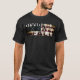 Schwarzer T - Shirt mit "teilte uns fallen" auf Hintergrund der amerikanischen Flagge.