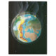 Planet Erde Tektonische Teller. Cartoon Planet Erde mit brennenden tektonischen Tellern, die Russ in die Atmosphäre freisetzen.