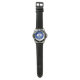 Herrenuhr aus Edelstahl mit schwarzem Lederarmband